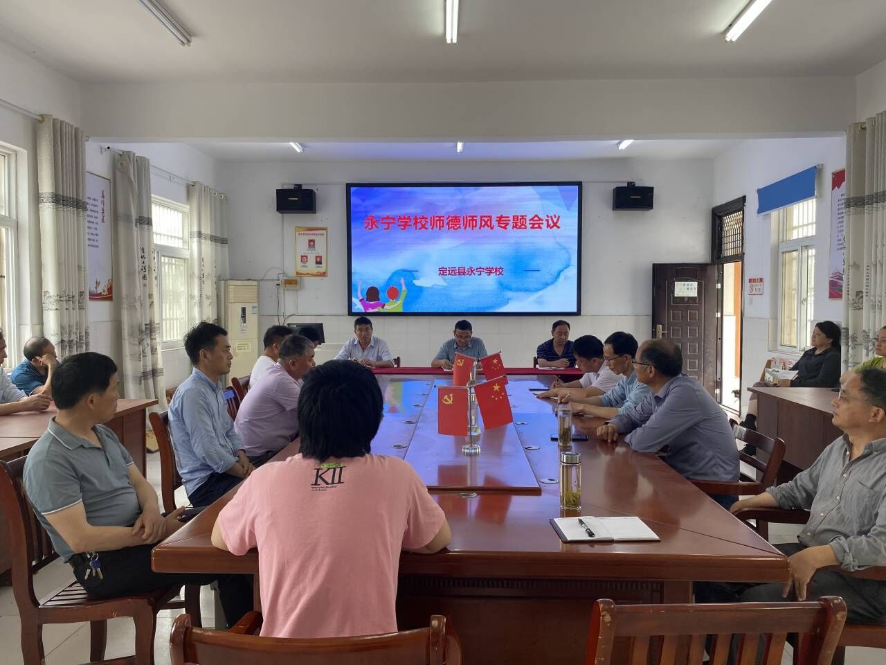~ 为了加强学校师德师风建设,提高立德树人水平,5月29日,定远县永宁学校召开师德师风建设专题会议。校党支部书记、校长李宇宝主持会议,全体教师参加会议。 ~ 会上,李宇宝带领全体教...