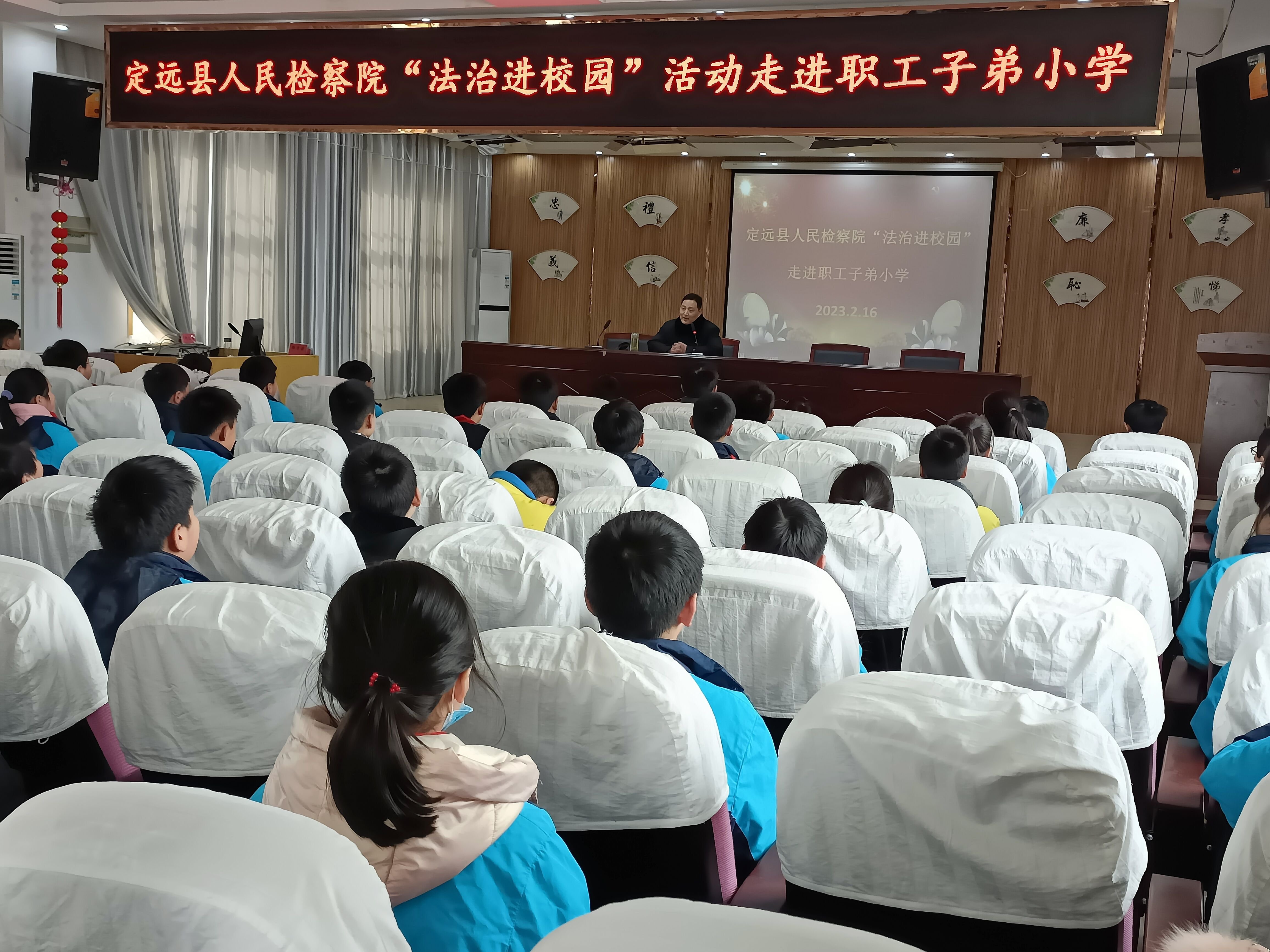 ~ 2月16日下午,定远县人民检察院党组成员、副检察长级检察员胡宝忠同志走进职工子弟小学开展法治进校园宣传教育专题讲座活动。 ~ 活动中,胡检察官利用多媒体课件主要从学宪法和预防未...