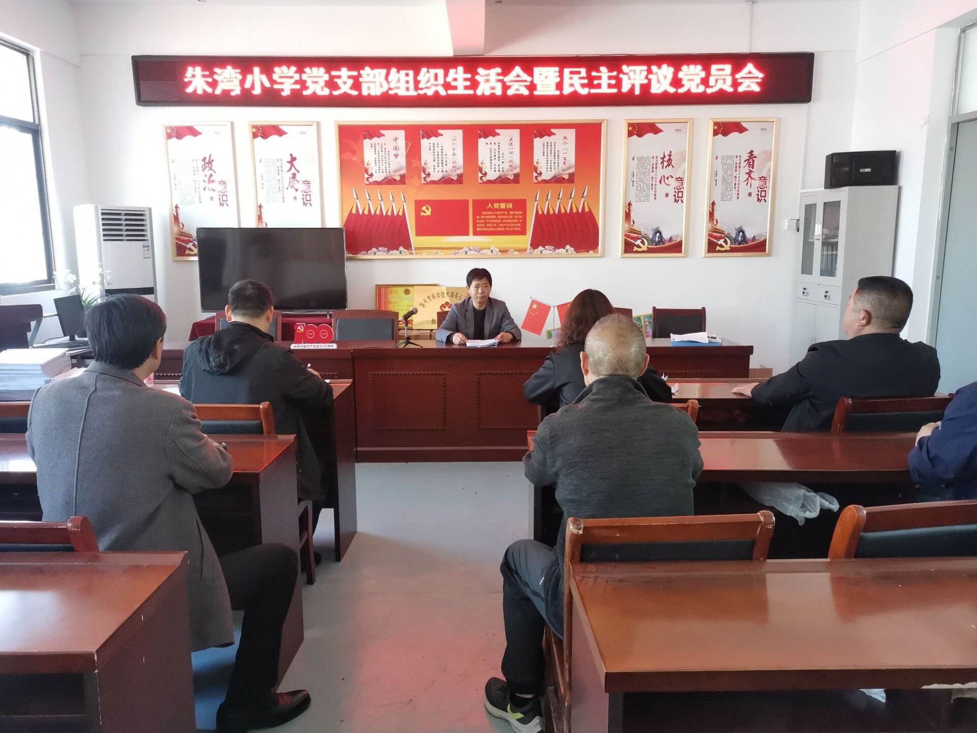 2023年3月10日,定远县朱湾小学党支部召开2022年度组织生活会暨民主评议党员大会,本次大会由该校支部书记杨明主持,全体党员参加。 组织生活会上,支部书记杨明与各位党员干部逐一...