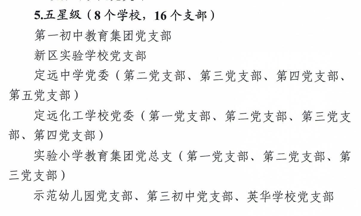 ~ 近日,中共定远县委教育体育工作委员会公布了教体系统2021年度星级党支部创建评定结果,定远县第一初中教育集团党支部再次被评定为“五星级党支部”,这是对该校党组织工作的充分肯定,...