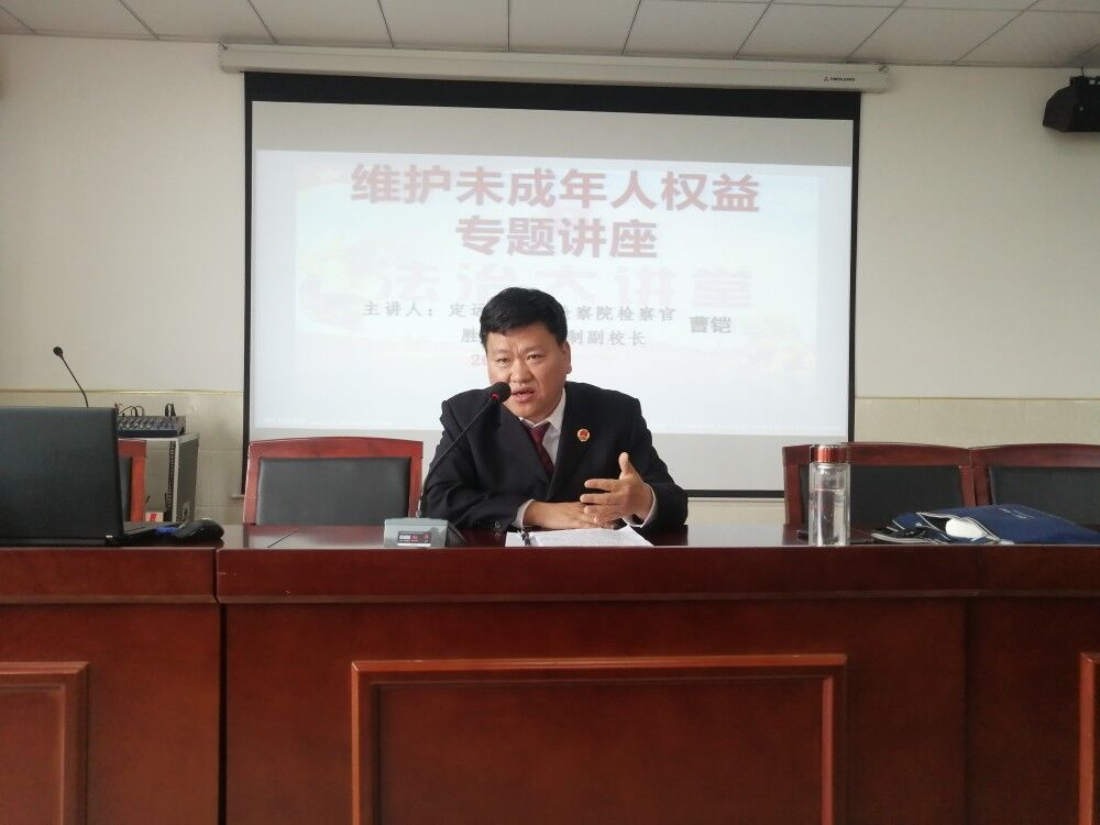 ~ 为了进一步增强在校学生的法制观念和安全意识,使广大学生更好地树立“学法、知法、懂法、守法”意识,维护未成年权益,定远县人民检察院兼职法制副校长曹铠来到胜利学校开展法制教育讲座活...