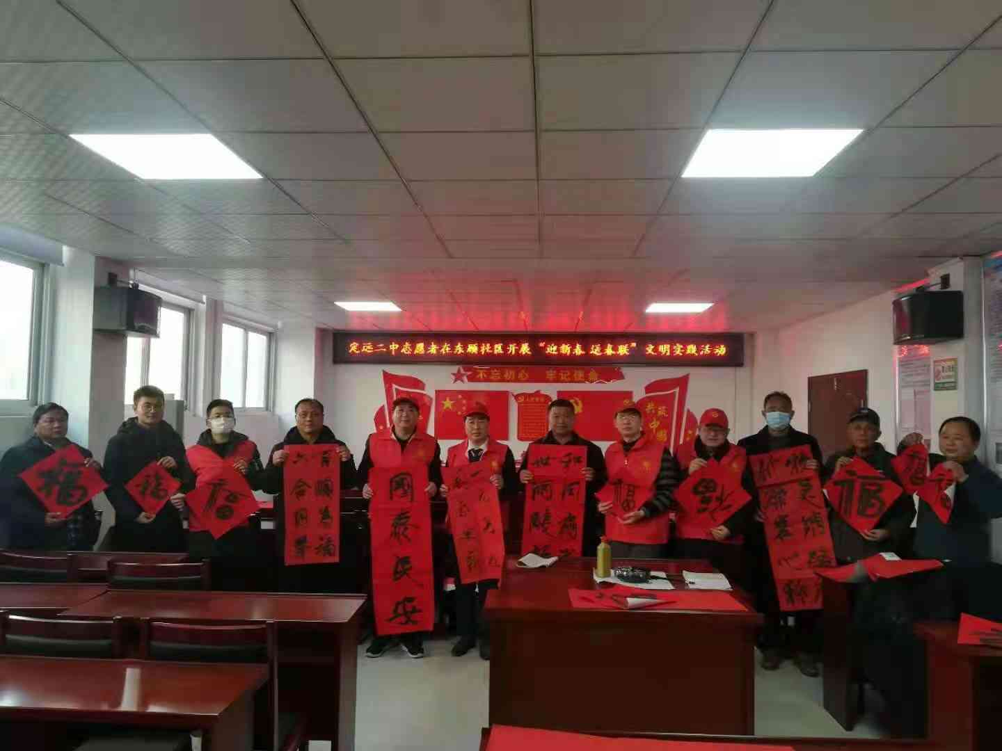 ~ 新春渐临近,祖国更美好。为喜迎2021年新春佳节, 2月7日上午,定远县池河中学团委、工会组织开展“写春联 送祝福”志愿服务活动。本次活动邀请定远县教体局行知书法教育志愿者服务...