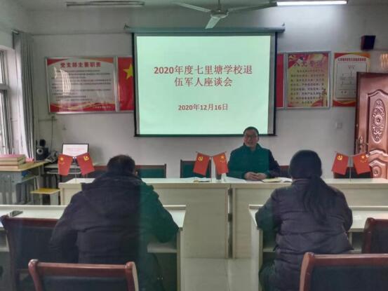 ~ 12月16日,定远县七里塘学校在党员活动室召开退役军人及军属座谈会。该校在职退役军人、退休退役军人及退役军属和该校部分领导参加了座谈会,会议由校长魏宽好主持。 ~ 魏宽好首先对...