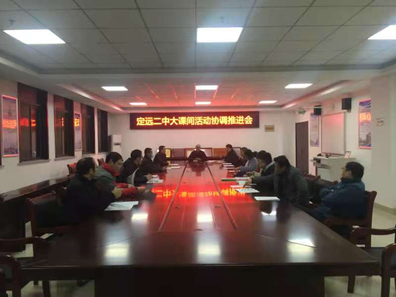 ~ 为了进一步规范和提升大课间活动,11月23日下午,定远二中举行大课间活动协调推动会议。会议由校党委委员、副校长袁家同同志主持,副校长周义松、王长波、团委、考核办、体育组等相关人...