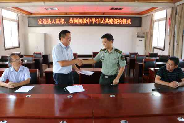 ~ 2019年7月6日,定远县桑涧初中双拥工作领导小组与定远县人民武装部就军民共建活动进行签约。县人民武装部杨光跃部长和金世权校长共同签订了《军民共建协议》。双方表示:部队和学校要...